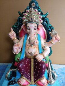 ही मूर्ती लाल बाग च्या राजाची प्रतिकृती आहे। १८ इंचाची हि मूर्ती आहे।